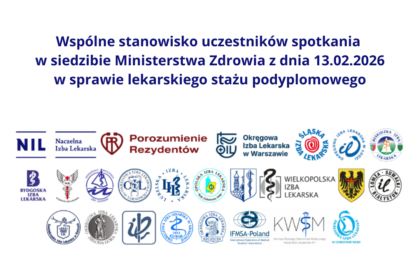 W piątek 13. lutego w siedzibie Ministerstwa Zdrowia odbyło się spotkanie przedstawicieli Samorządu Lekarzy i Lekarzy Dentystów, środowiska lekarzy rezydentów i środowiska studentów medycyny. Rozmowa dotyczyła zmian w stażu podyplomowym, planowanych w nowelizacji ustawy o zawodzie lekarza i lekarza dentysty. Spotkanie dowiodło jednolitości sprzeciwu wobec skrócenia lub likwidacji stażu zarówno w środowisku lekarskim, jak i studenckim. Na tej podstawie wypracowano wspólne stanowisko.